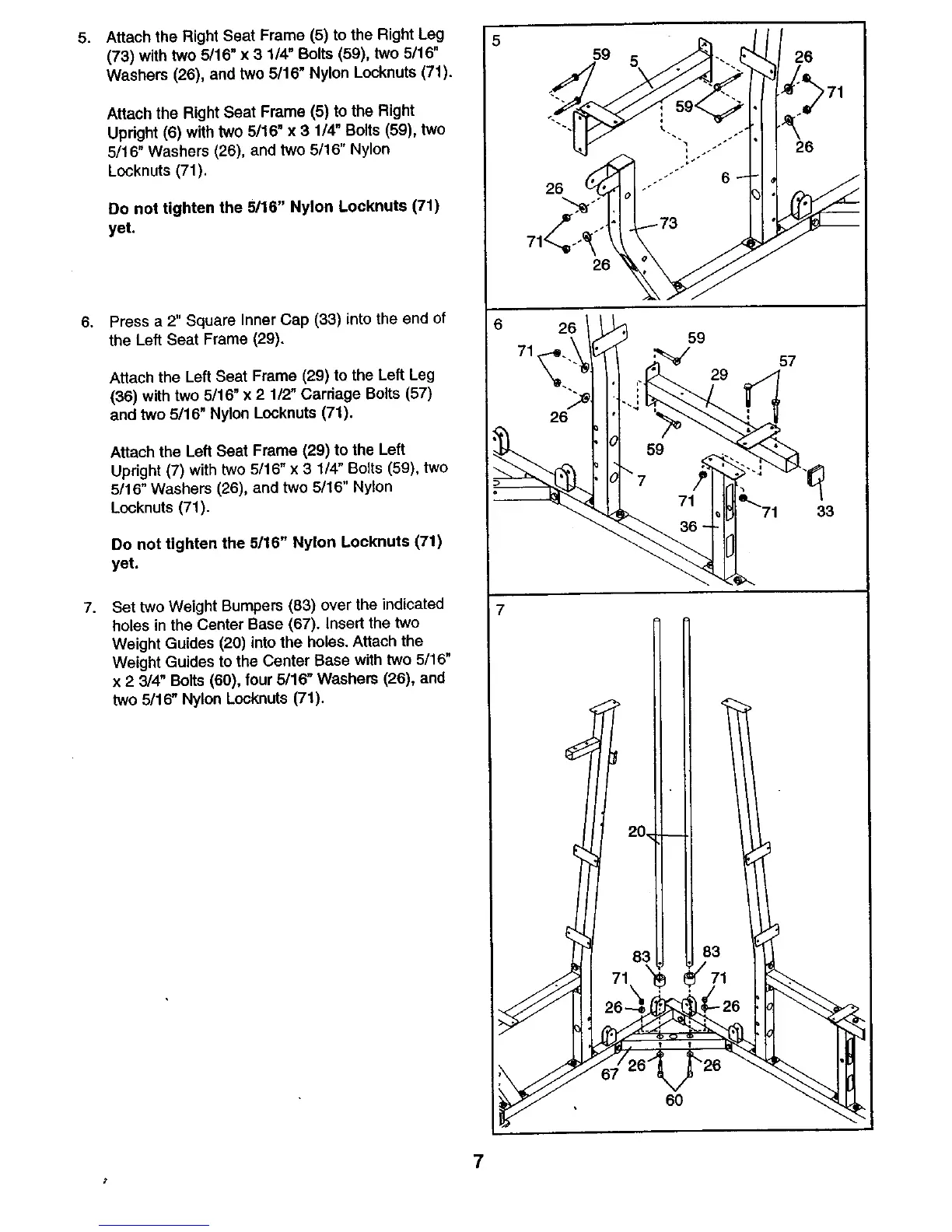 Do not tighten the 5/16" Nylon Locknuts (71)