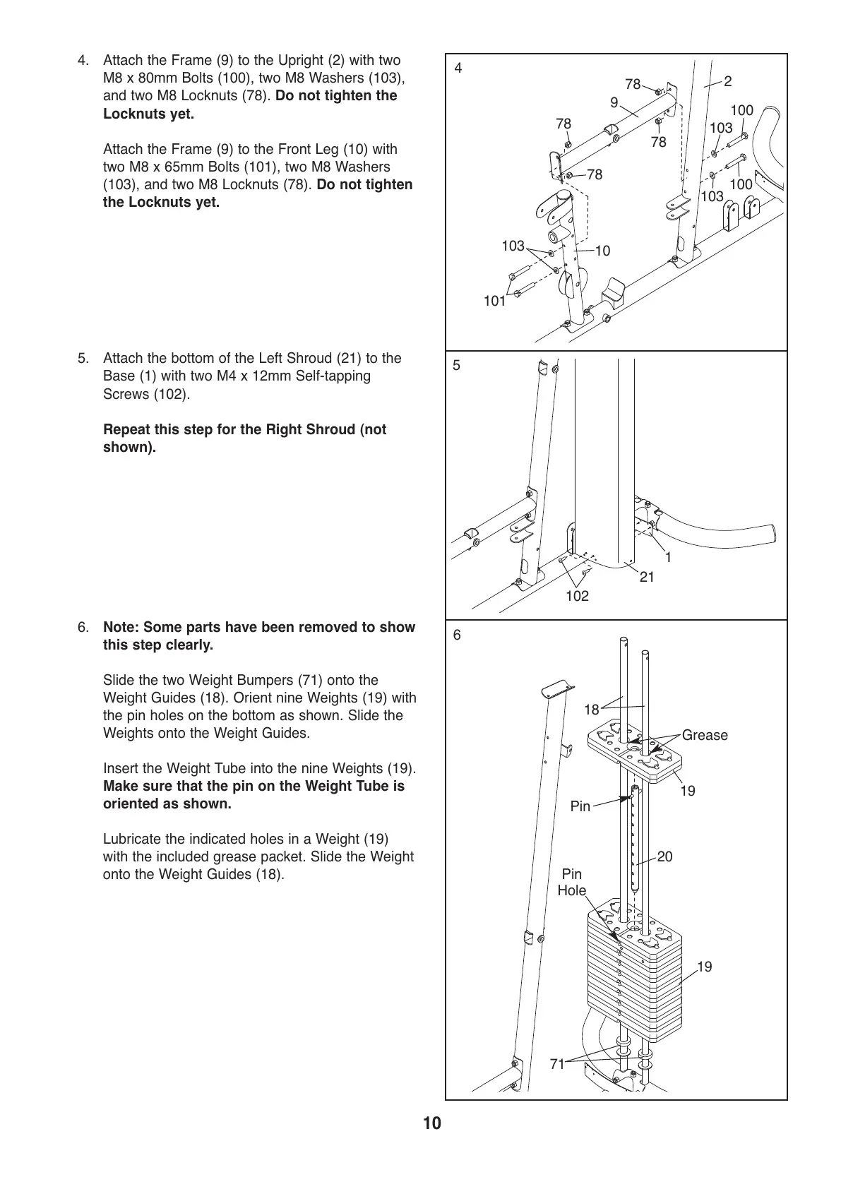 M8 x 80mm Bolts (100), two M8 Washers (103),