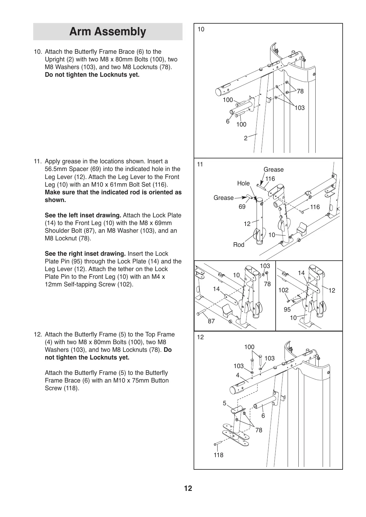 Leg (10) with an M10 x 61mm Bolt Set (116).