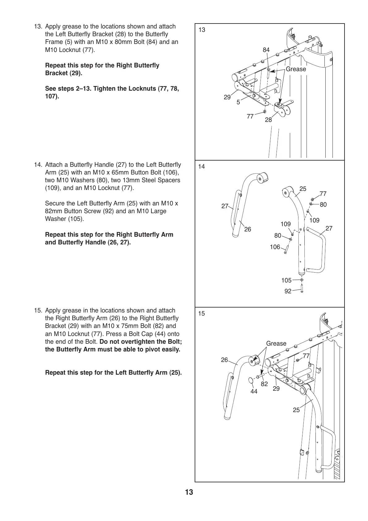 Secure the Left Butterfly Arm (25) with an M10 x
