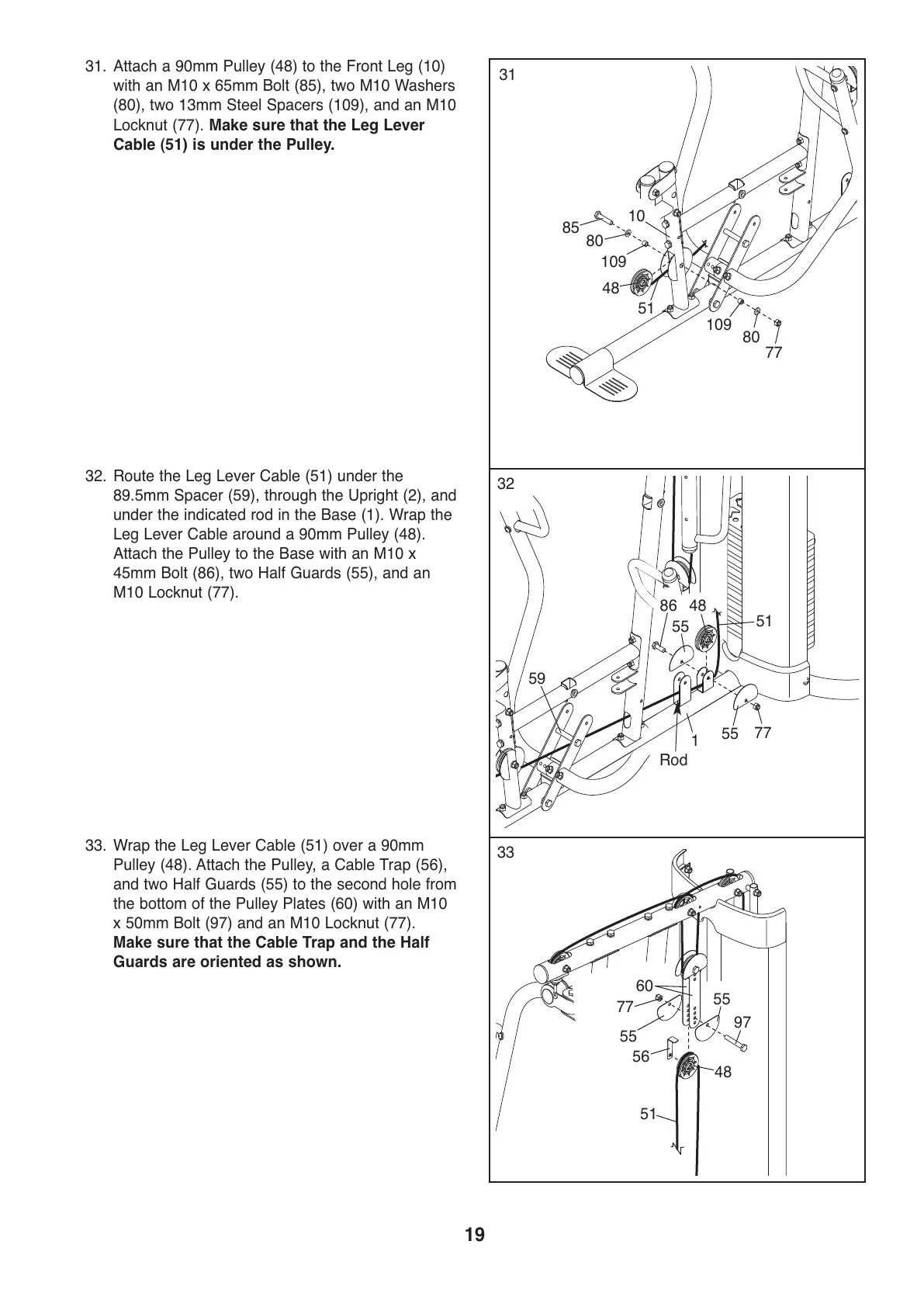 33. Wrap the Leg Lever Cable (51) over a 90mm
