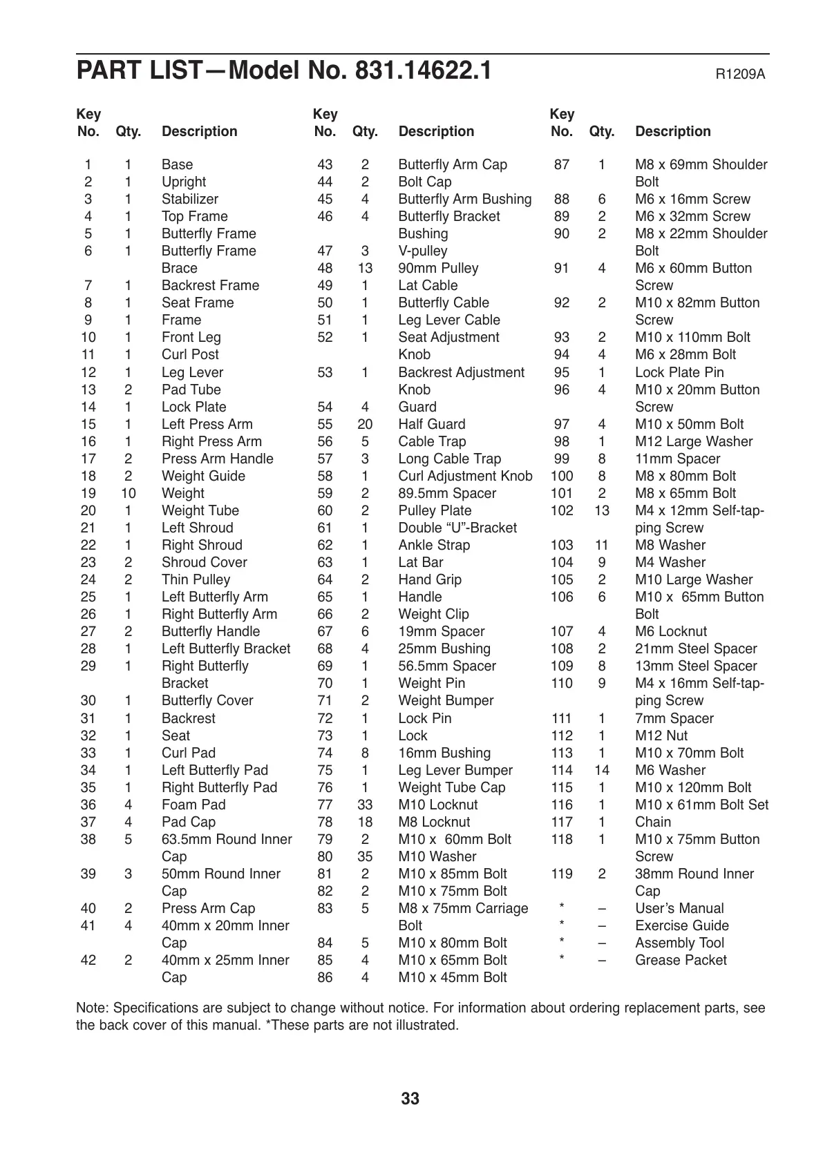 Note: Specifications are subject to change without notice. For information about ordering replacement parts, see