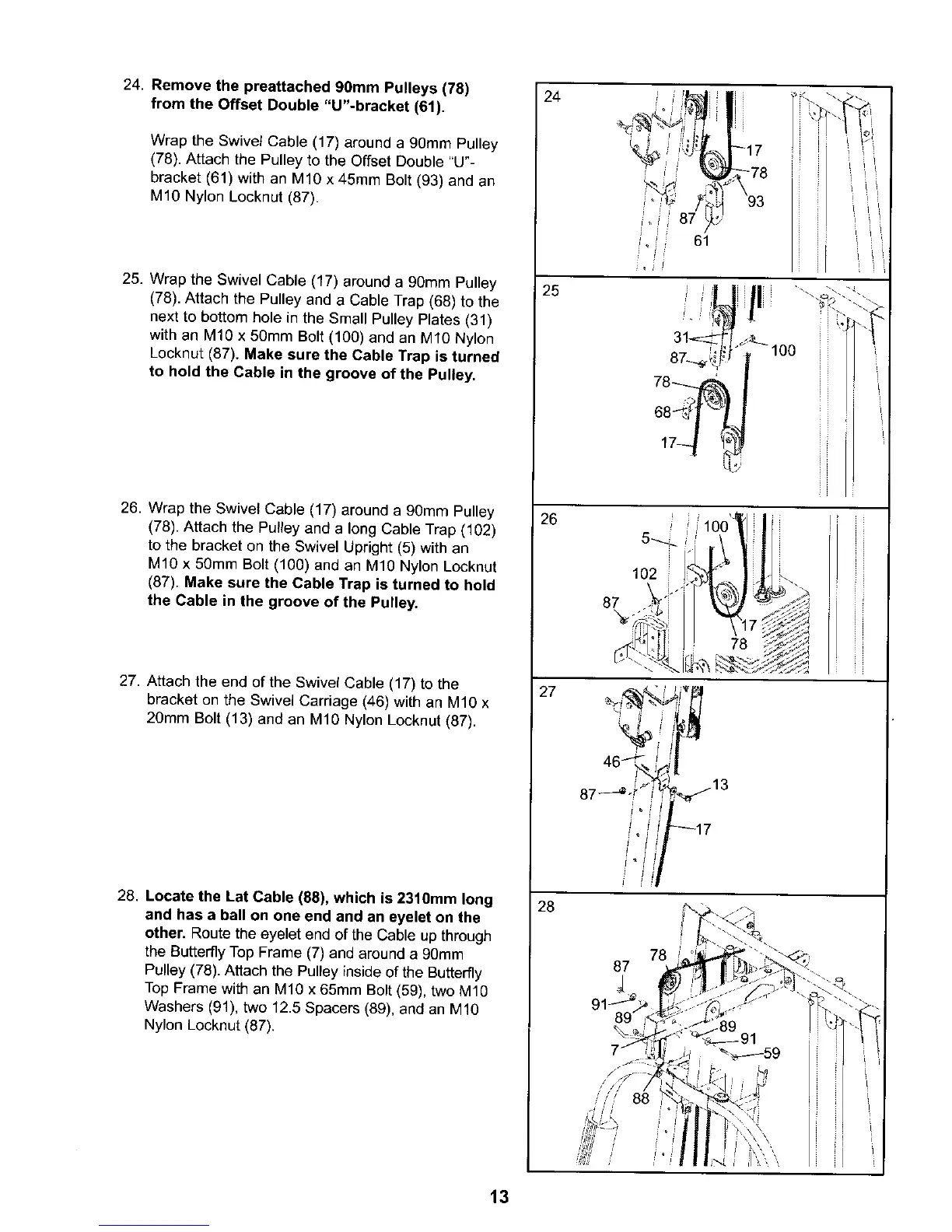 26. Wrap the Swivel Cable (17) around a 90mm Pulley