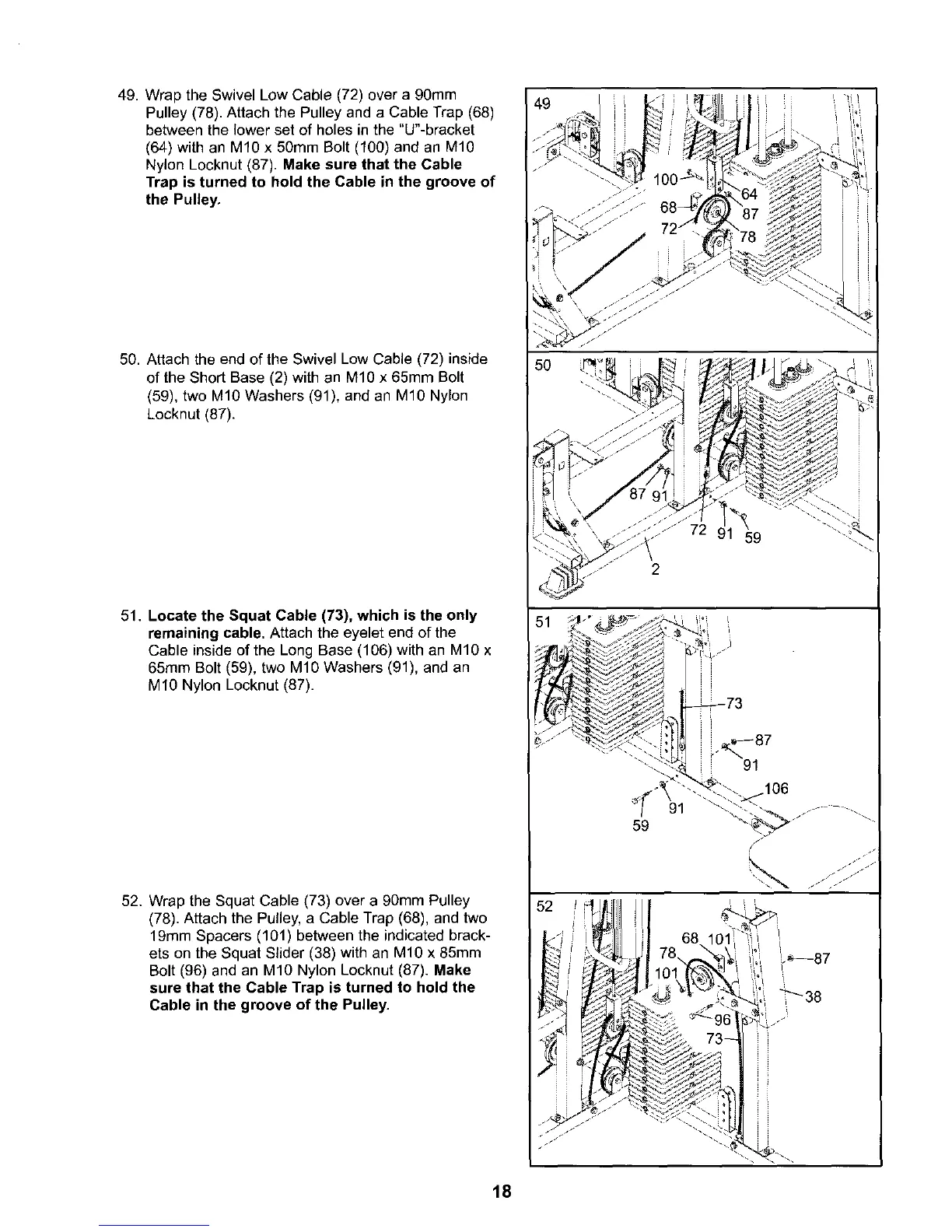 52. Wrap the Squat Cable (73) over a 90mm Pulley