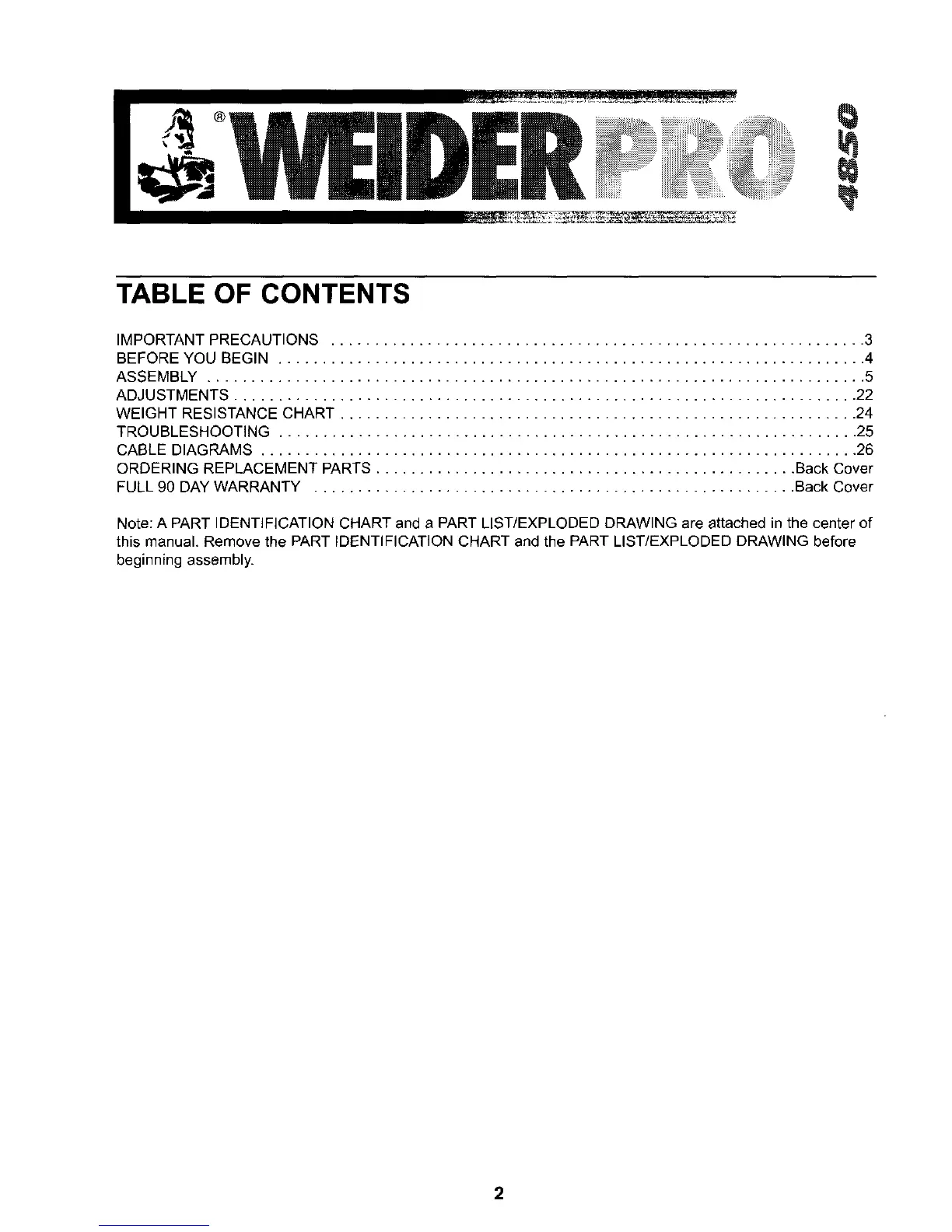 WEIGHT RESISTANCE CHART ........................................................... 24