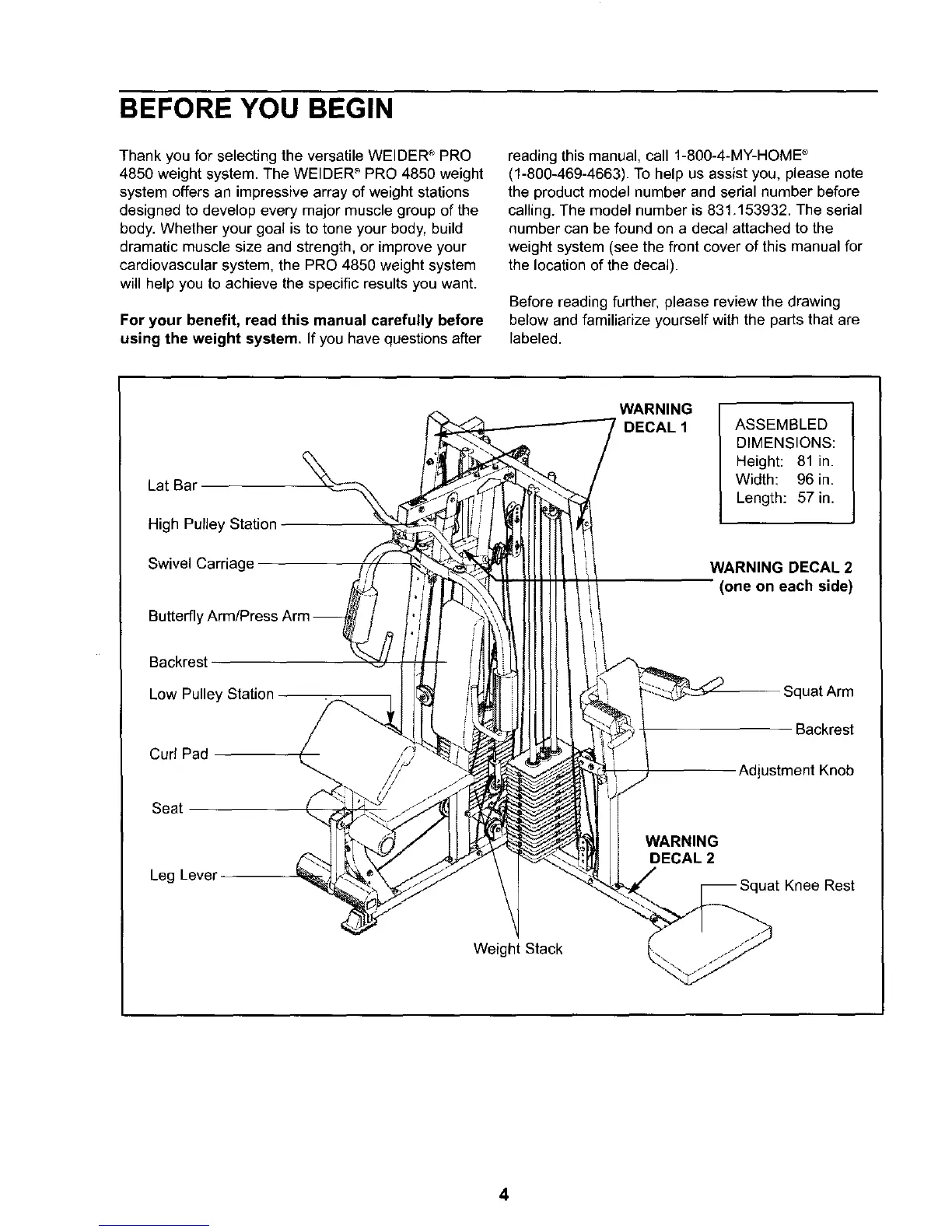 weight system (see the front cover of this manual for