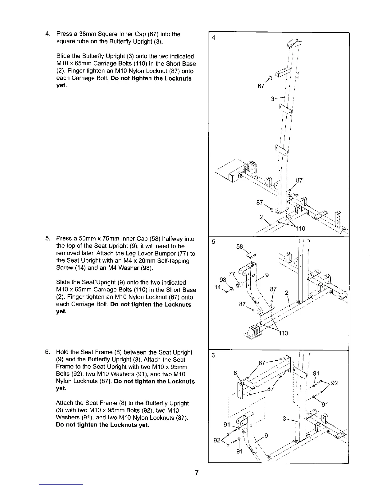 (9) and the Butterfly Upright (3). Attach the Seat