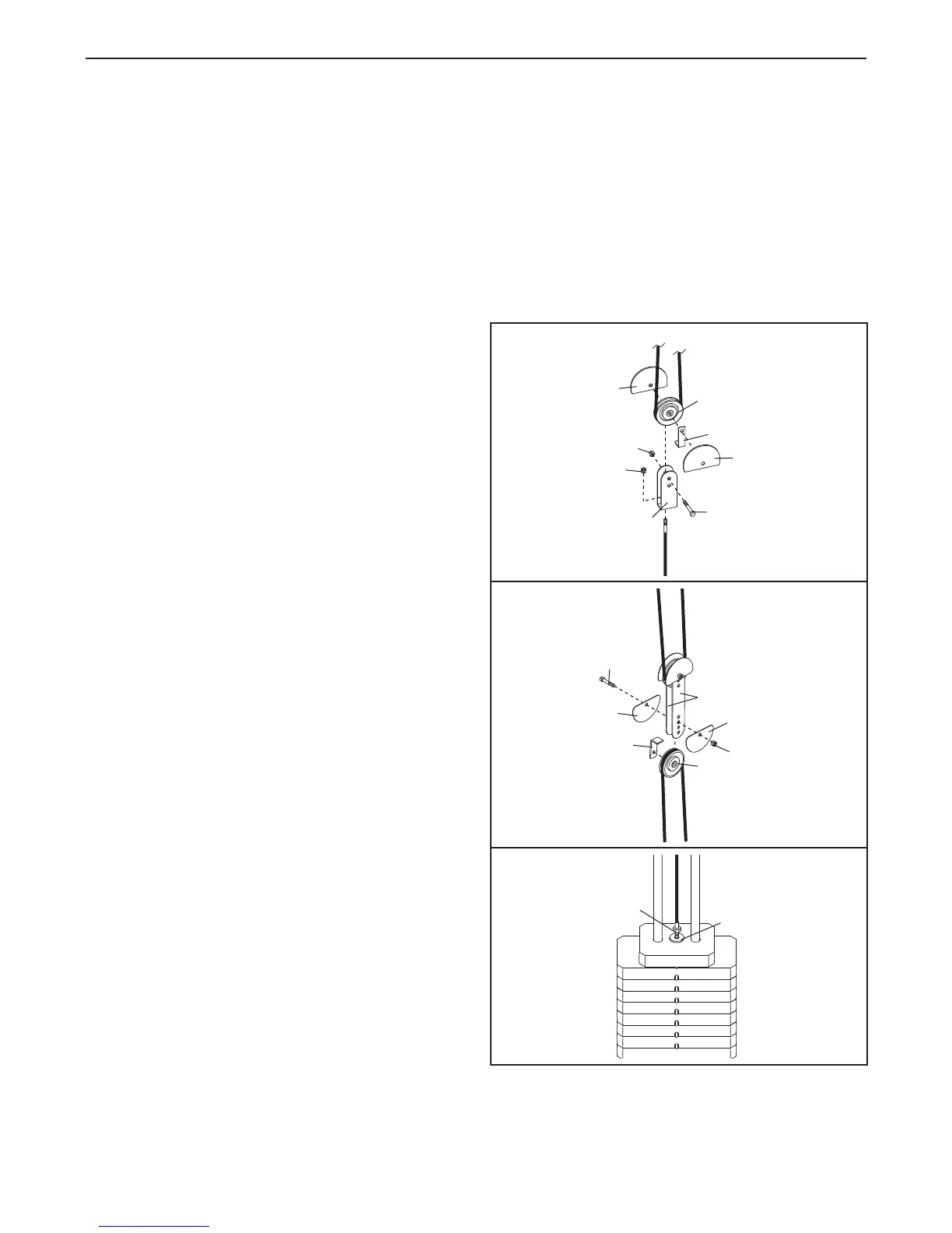 stack. If a cable tends to slip off the pulleys often, it may have become twisted. Remove the cable and