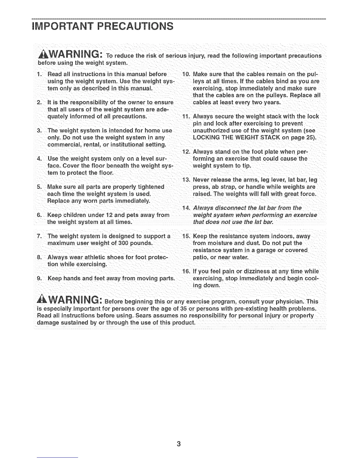 using the weight system. Use the weight sys- ieys at all times, if the cables bind as you are