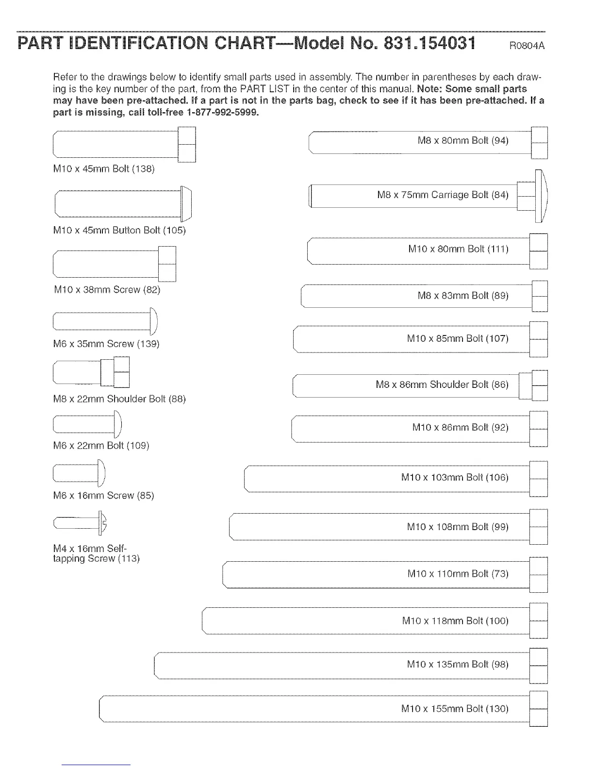 PART IDENTIFICATION CHART--Model No. 831.154031 Roso4A