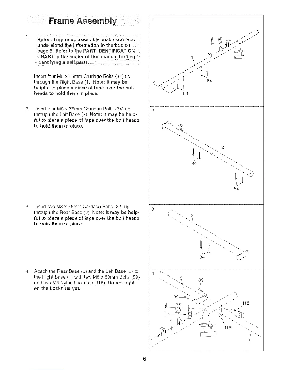 and two M8 Nylon Locknuts (115), Do not tight-