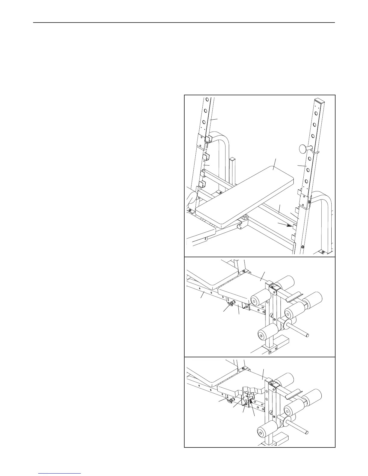 This section explains how to adjust the weight bench. See the accompanying exercise guide to see the correct