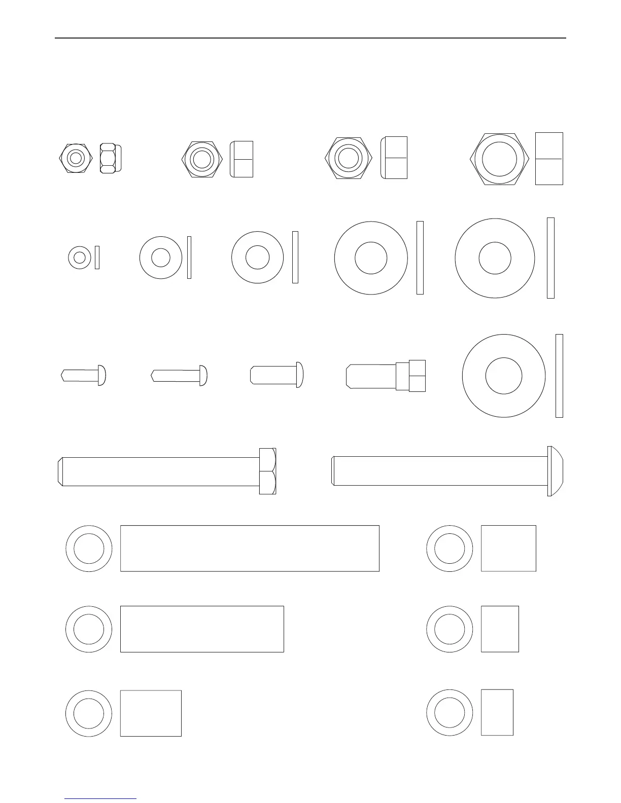 Refer to the drawings below to identify small parts used in assembly. The number in parentheses by each draw-