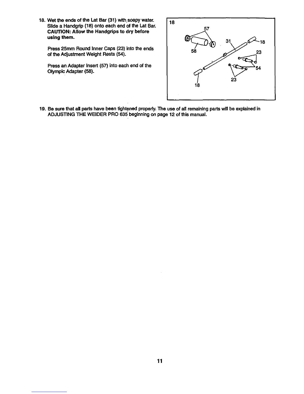 Slide a Handgrip (18) onto each end of the Lat Bar.