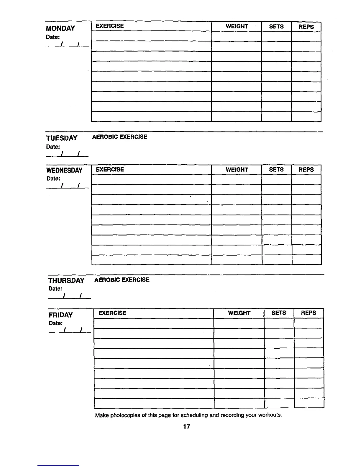 Make photocopies of this page for scheduling and recording your workouts.