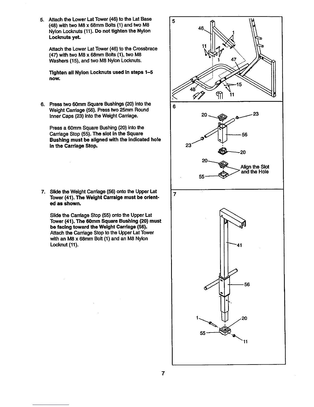 7. Slide the Weight Carriage (56) onto the Upper Lat