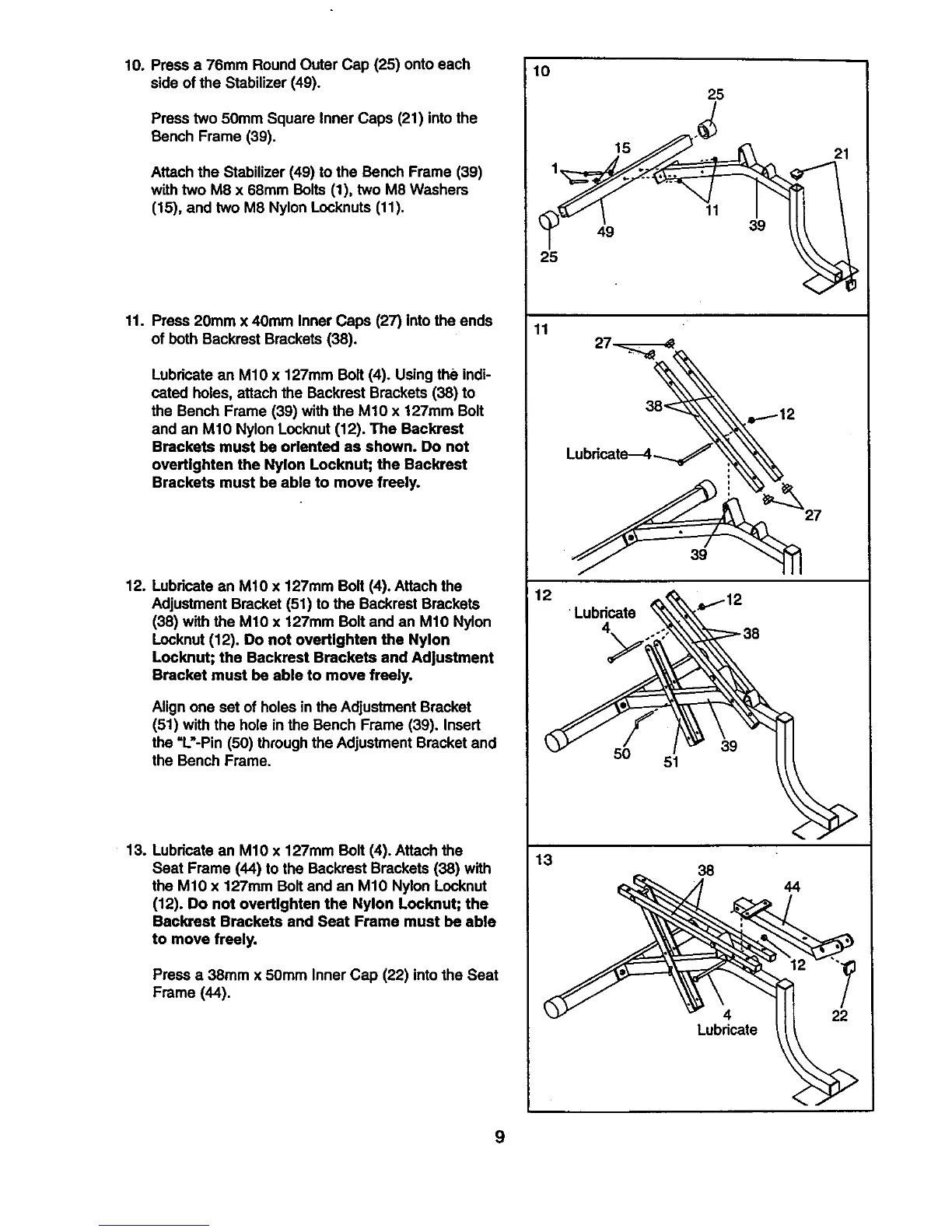 Attach the Stabilizer (49) to the Bench Frame (39)
