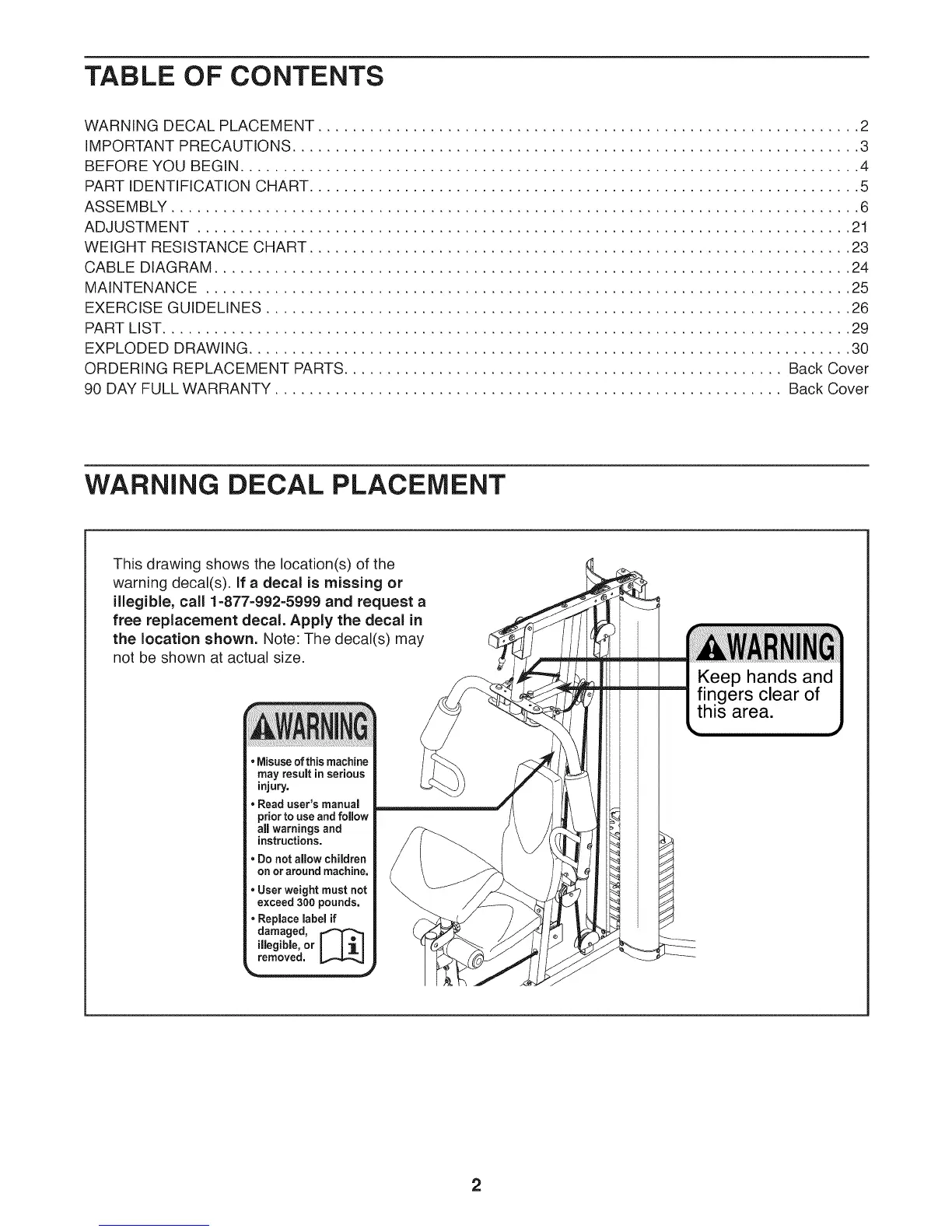 WARNING DECAL PLACEMENT ............................................................... 2