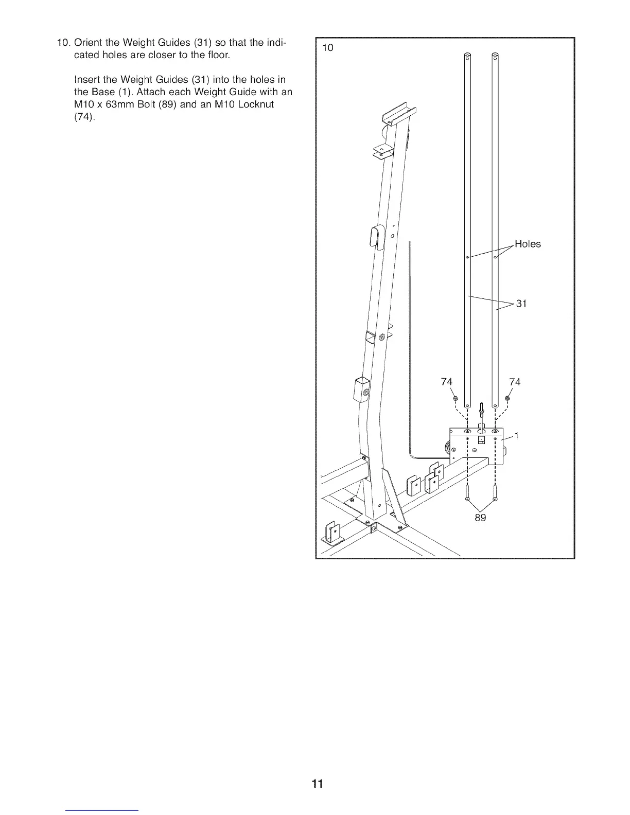 10. Orient the Weight Guides (31) so that the indi-
