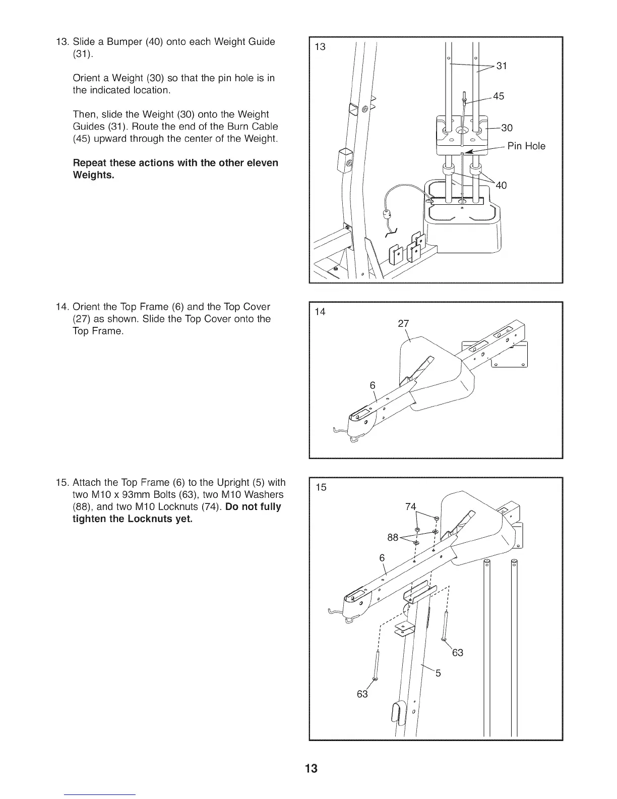 13. Slide a Bumper (40) onto each Weight Guide