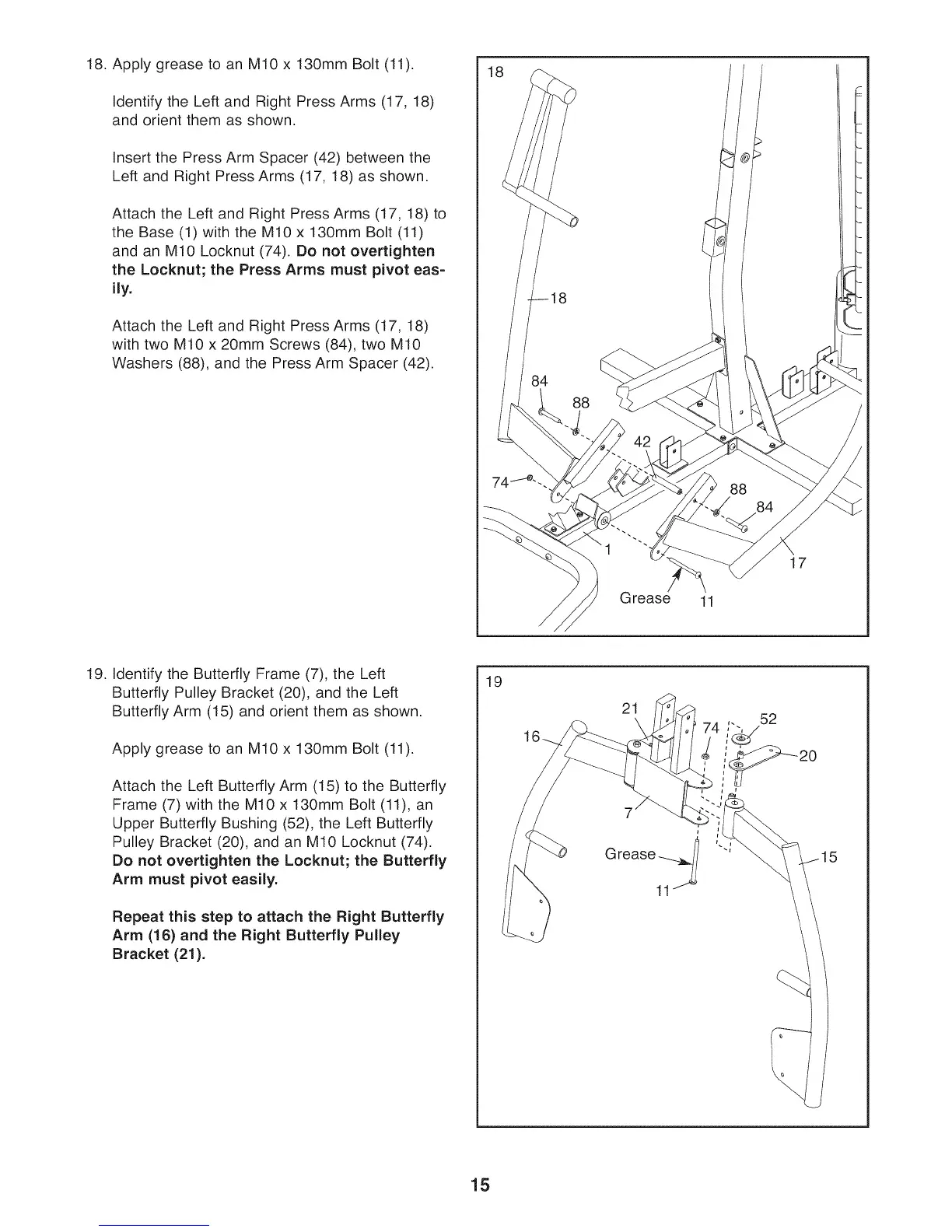 Attach the Left and Right Press Arms (17, 18)