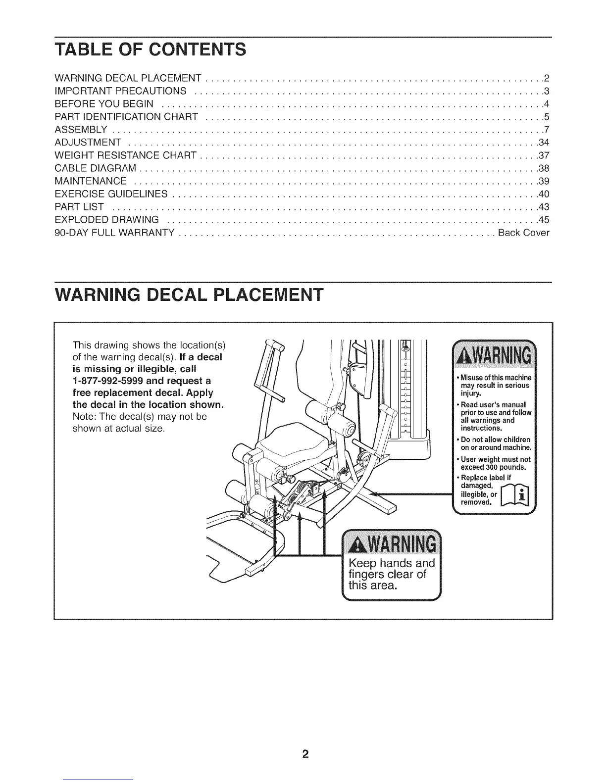 WEIGHT RESISTANCE CHART .............................................................. 37