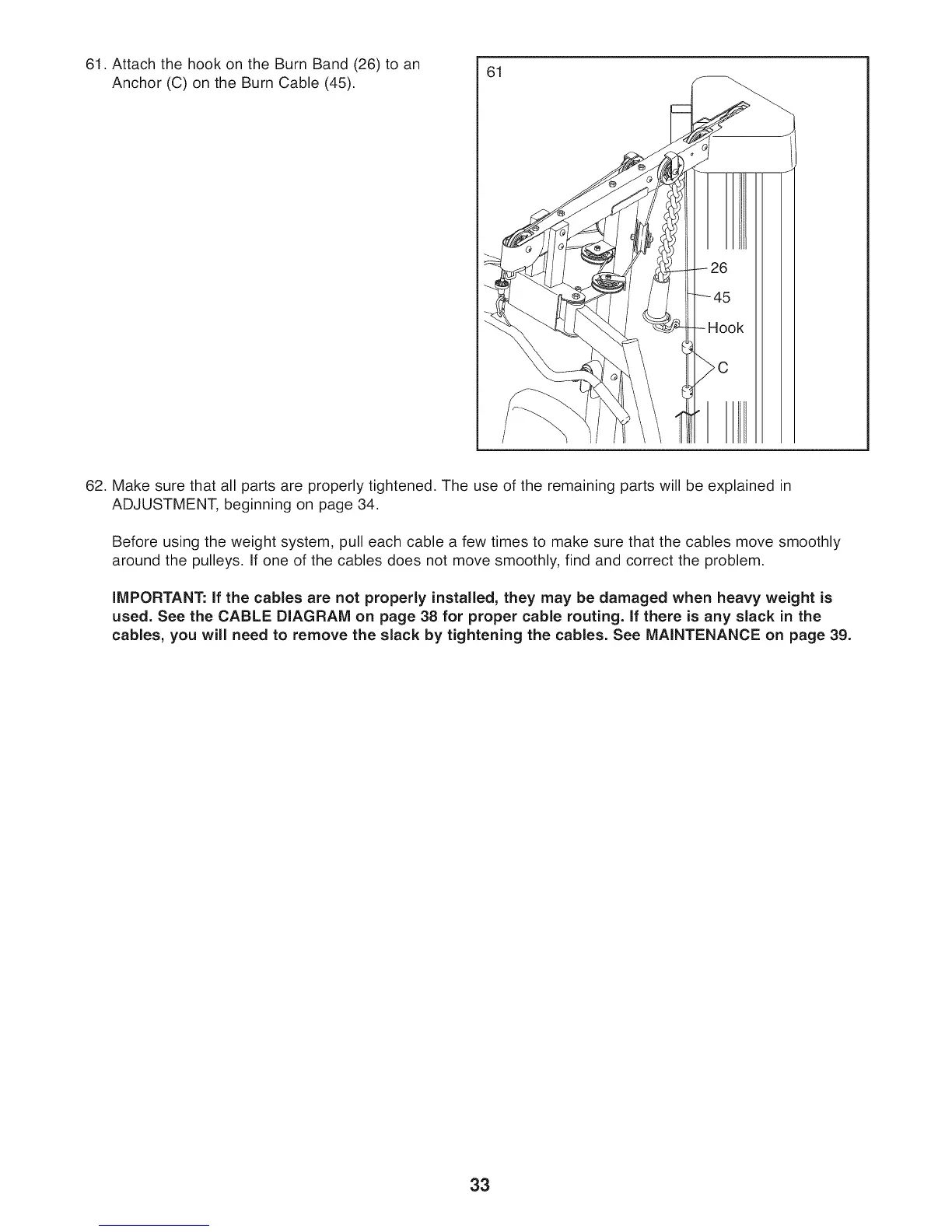 Before using the weight system, pull each cable a few times to make sure that the cables move smoothly