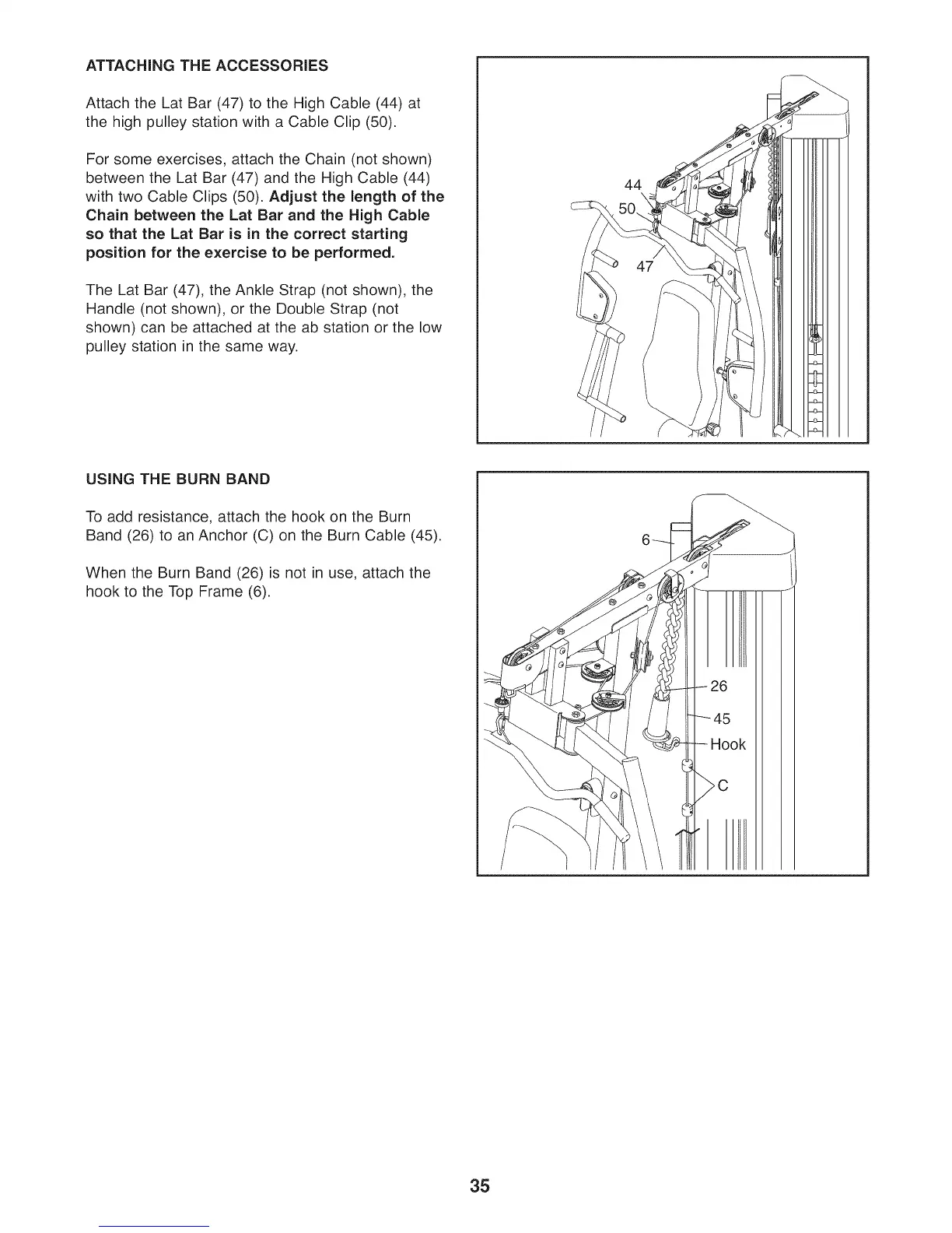 The Lat Bar (47), the Ankle Strap (not shown), the