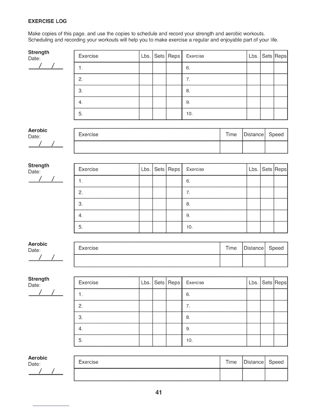 Make copies of this page, and use the copies to schedule and record your strength and aerobic workouts.