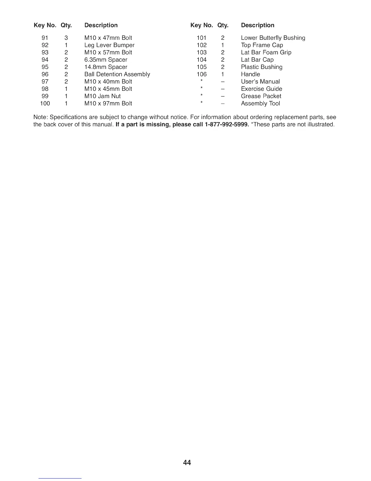 98 1 M10 x 45mm Bolt * - Exercise Guide