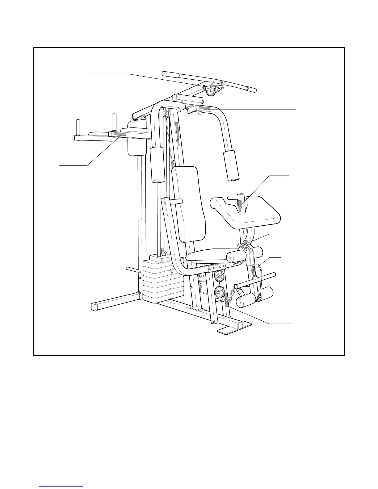38. Remove the decals from the decal sheet (not shown) and apply them to the home gym system in the loca-