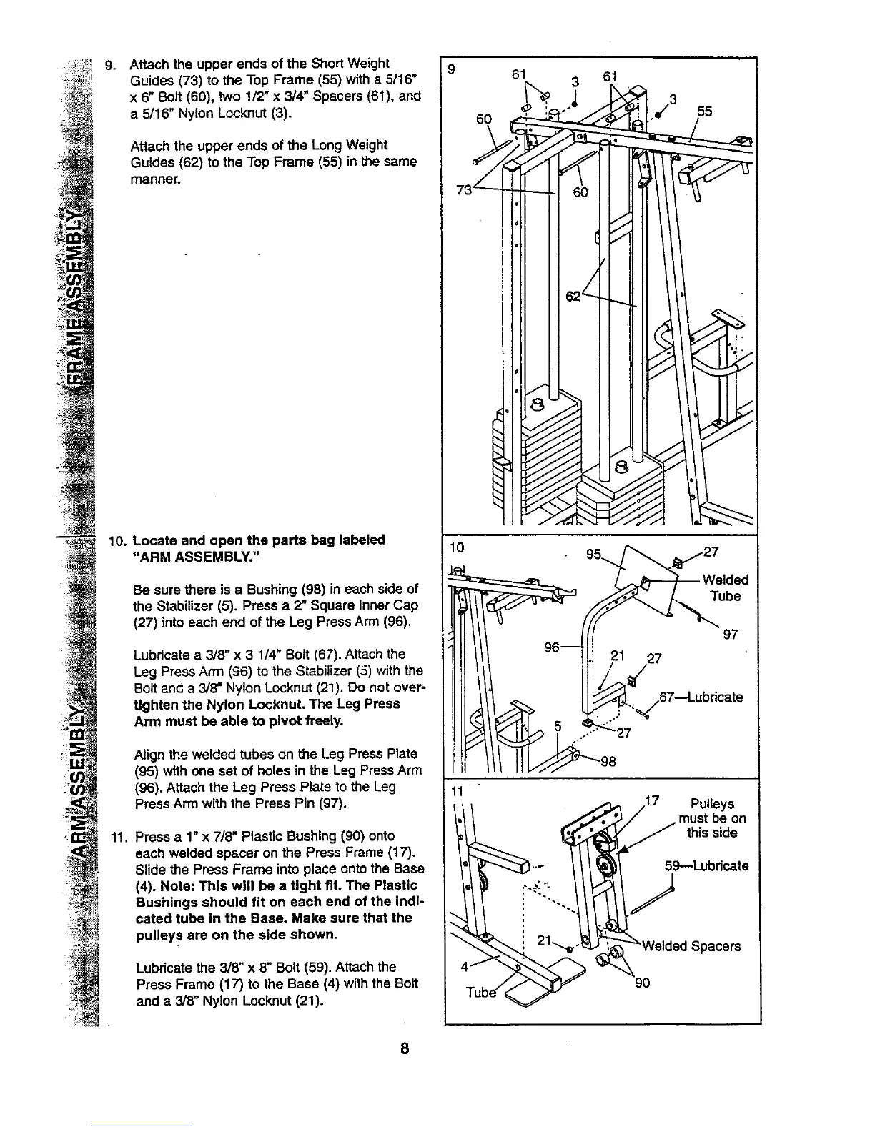 Lubricate the 3/8" x 8" Bolt (59). Attach the
