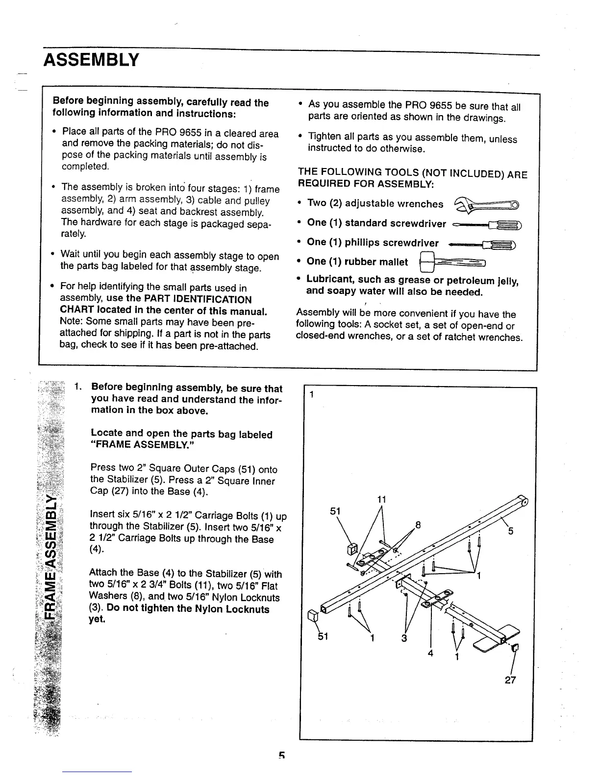 Weider Pro 9655 - ASSEMBLY; FRAME ASSEMBLY