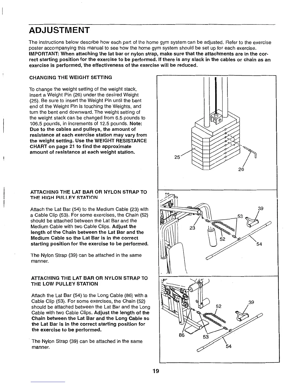 Weider Pro 9725 - Adjustment