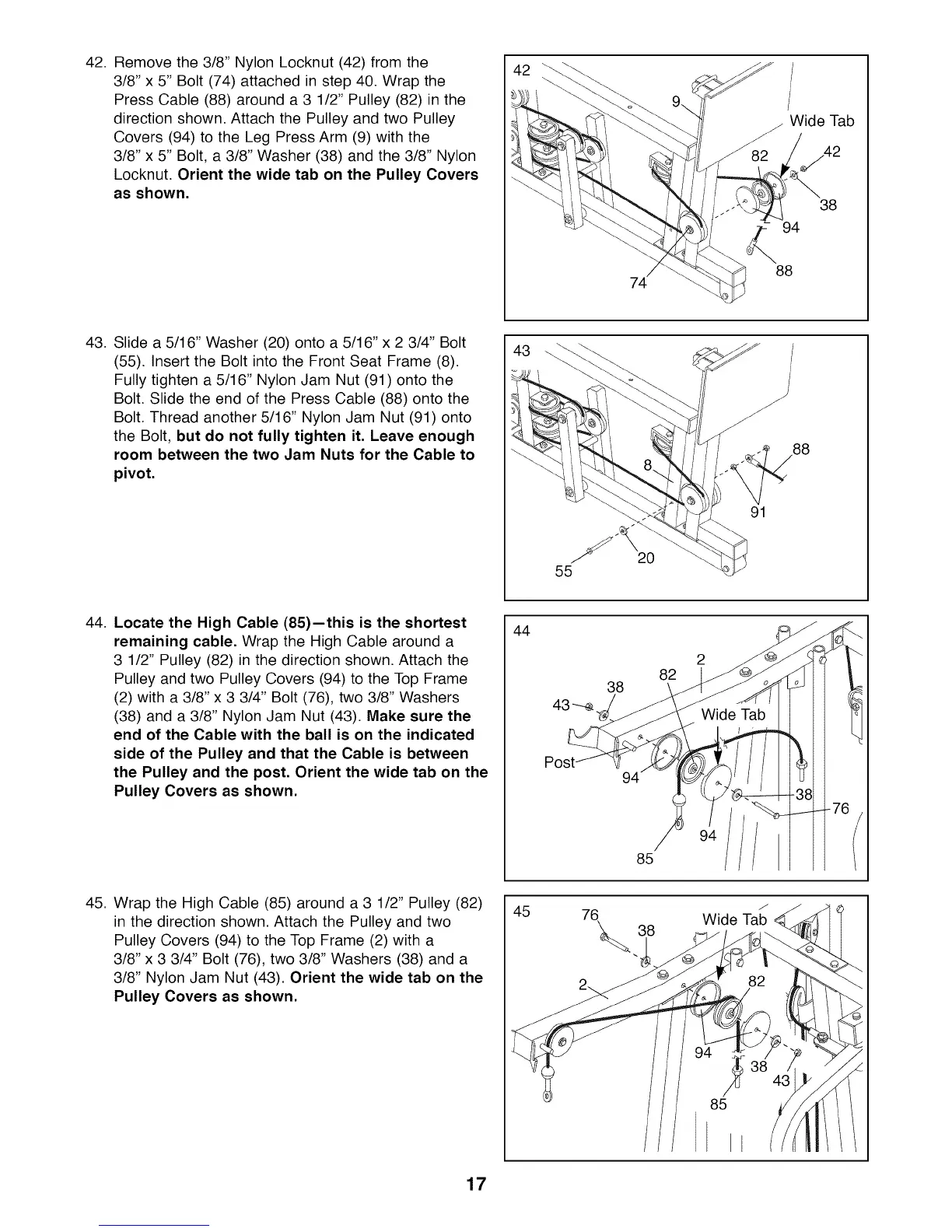 Locknut. Orient the wide tab on the Pulley Covers
