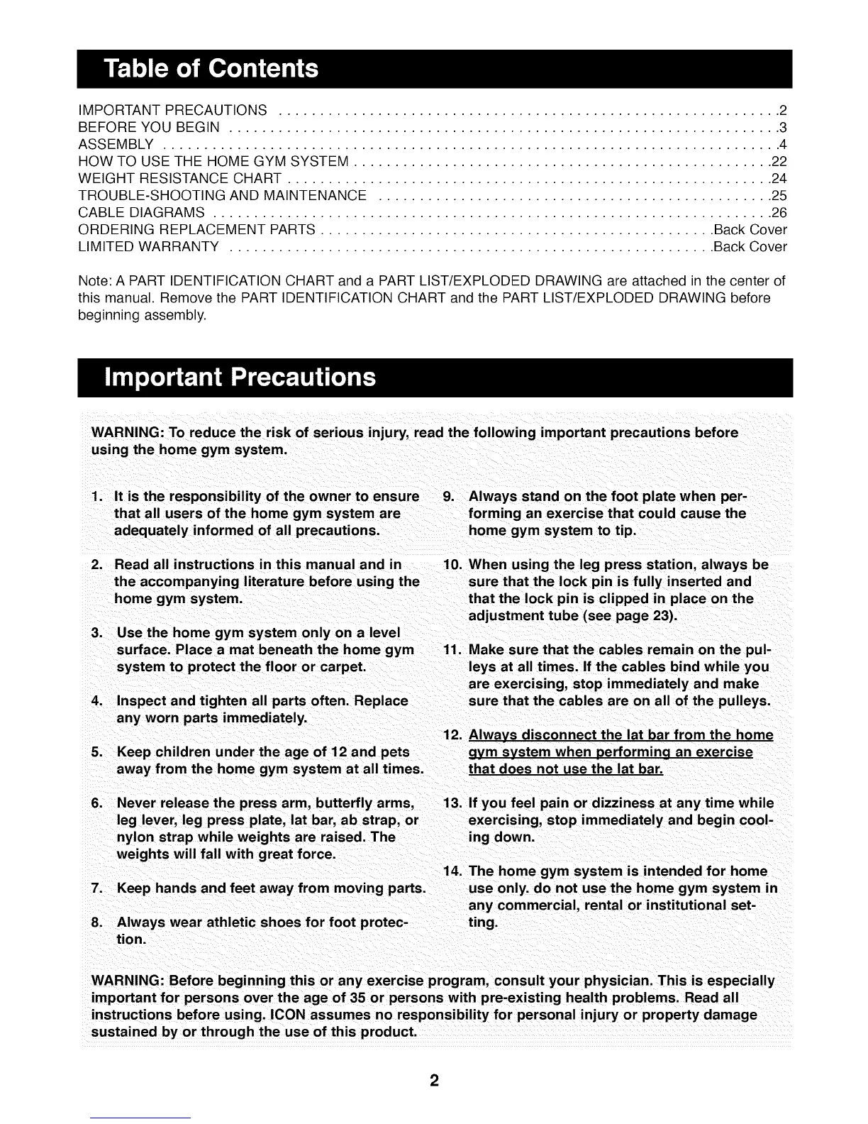 instructions before using. ICON assumes no responsibility for personal injury or property damage