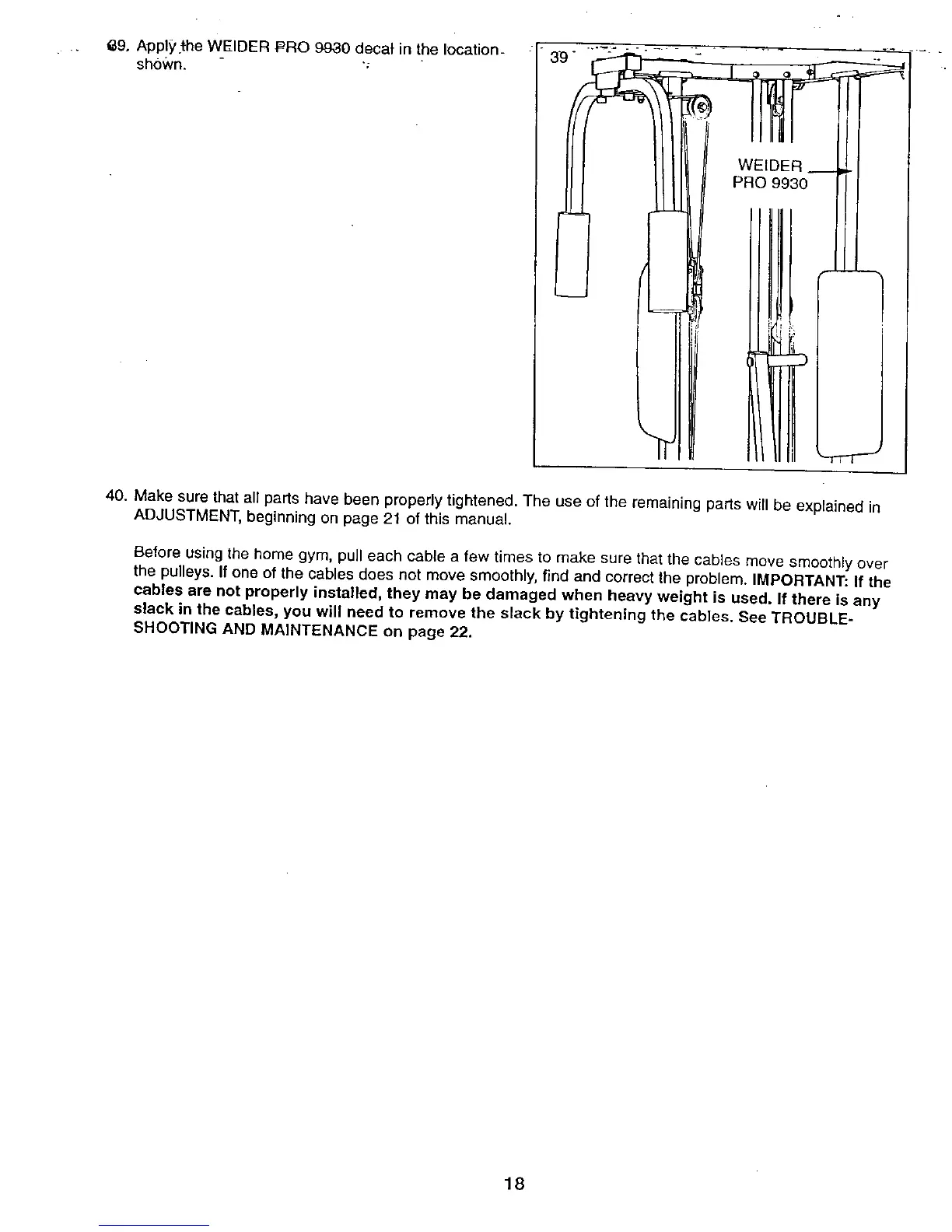 40. Make sure that all parts have been properly tightened. The use of the remaining parts will be explained in