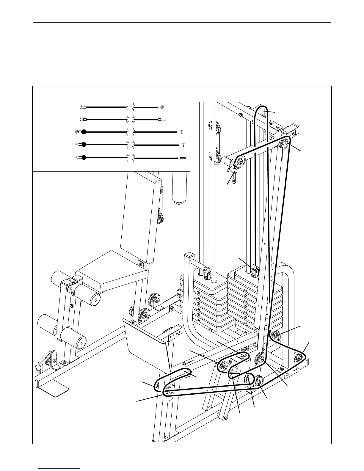 the Cable Traps do not touch or bind the Cables. Incorrect cable routing can damage the weight system.