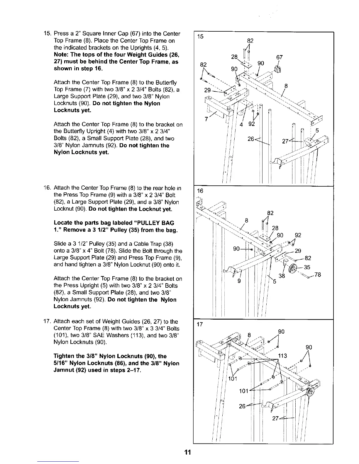 3/8" Nylon Jamnuts (92). Do not tighten the