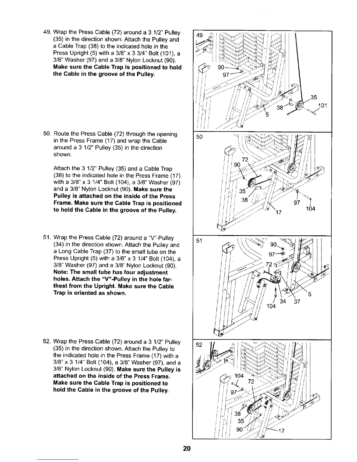 49. Wrap the Press Cable (72) around a 3 1/2" Pulley