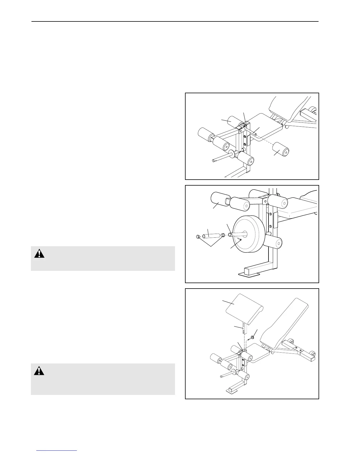 Inspect and tighten all parts each time you use the weight bench. Replace any worn parts immediately. The