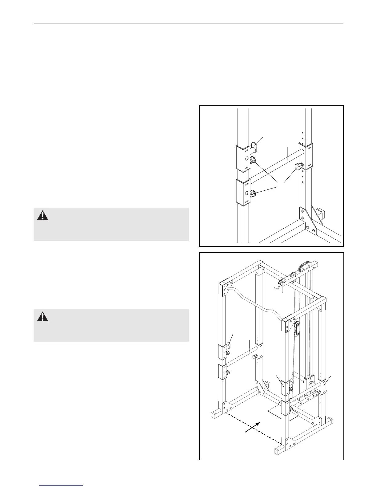 Inspect and tighten all parts each time you use the weight rack. Replace any worn parts immediately. The weight