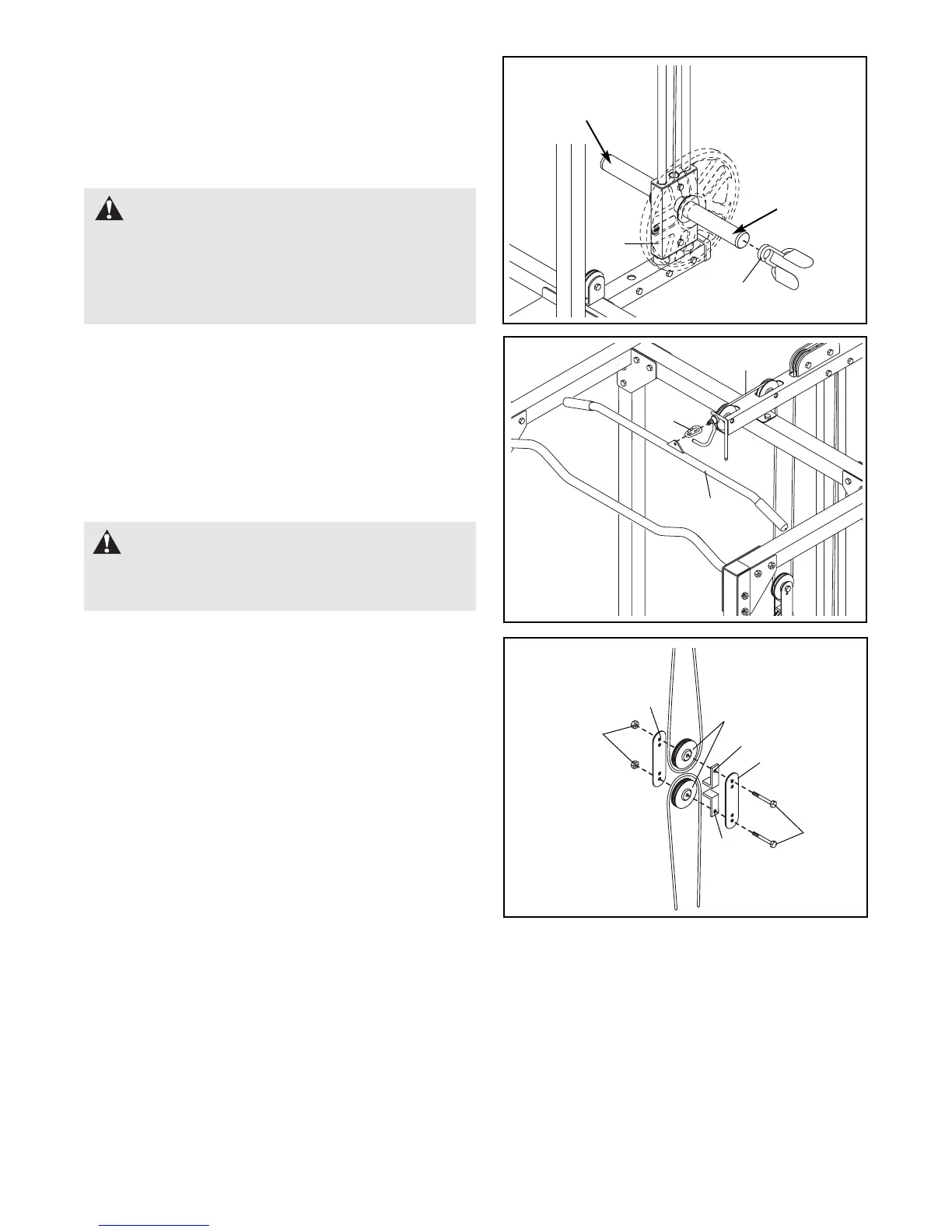 Trap (24) to the two Pulley Plates (17). Reattach the