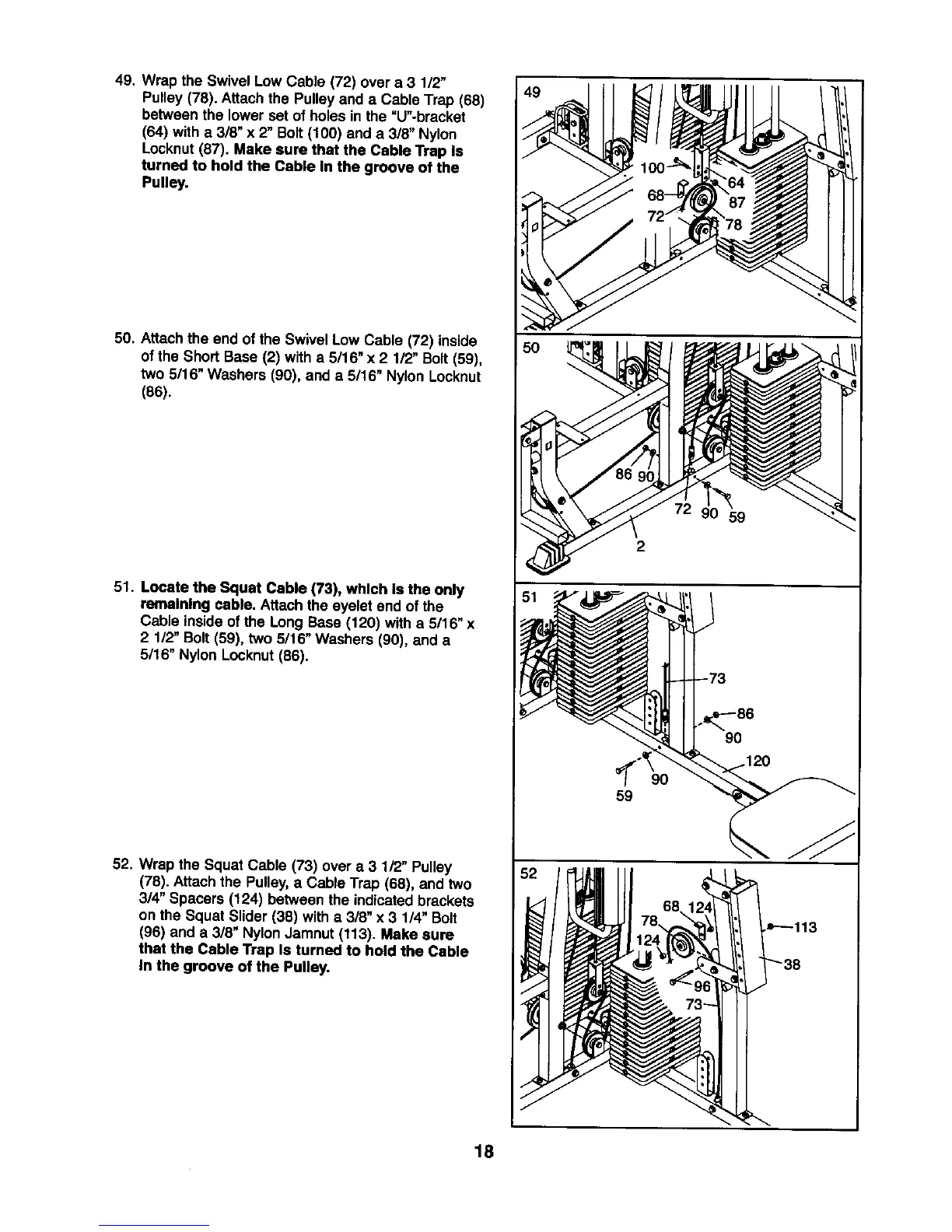 52. Wrap the Squat Cable (73) over a 3 1/2" Pulley