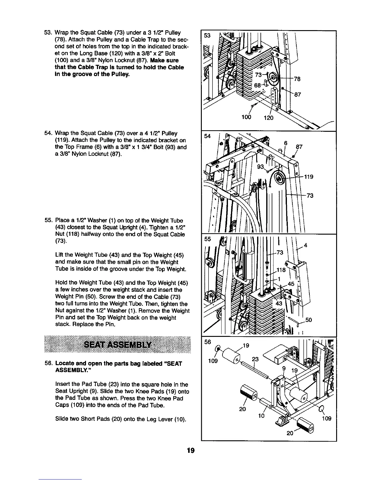 54. Wrap the Squat Cable (73) over a 4 1/2" Pulley