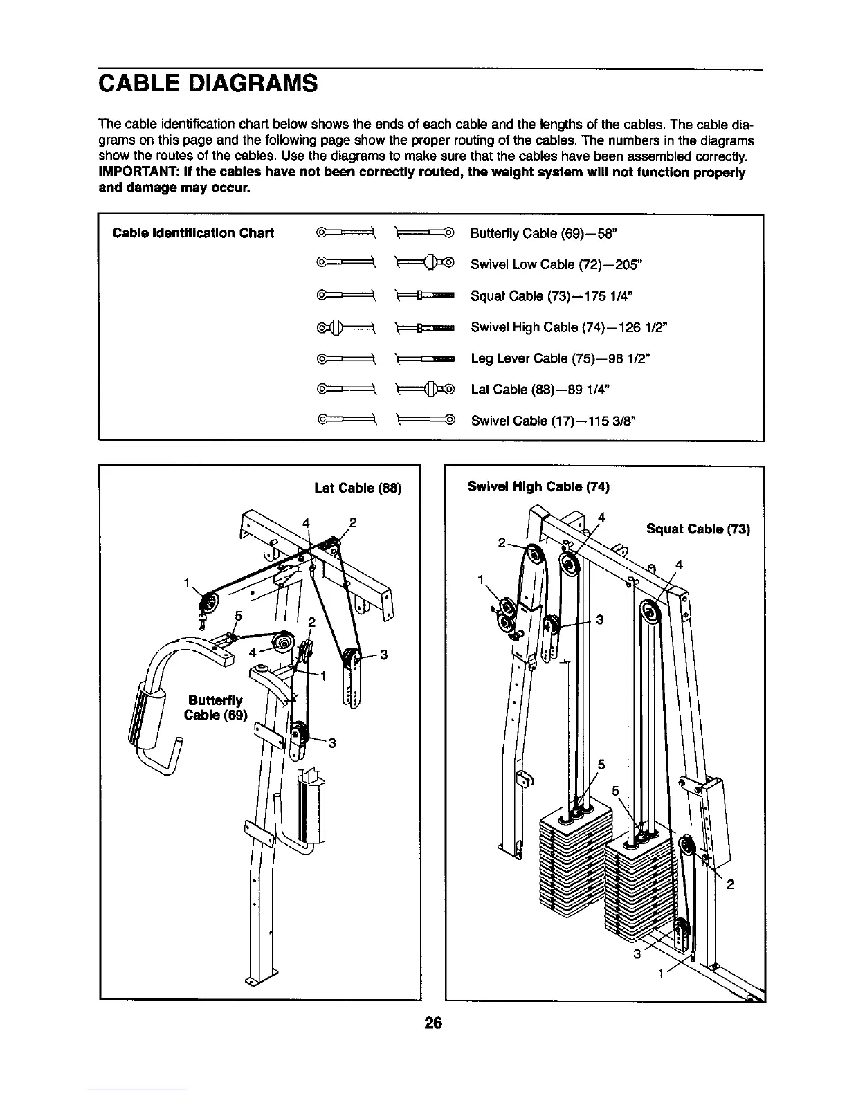 IMPORTANT: If the cables have not been cor_=ctly routed, the weight system wnl not function properly