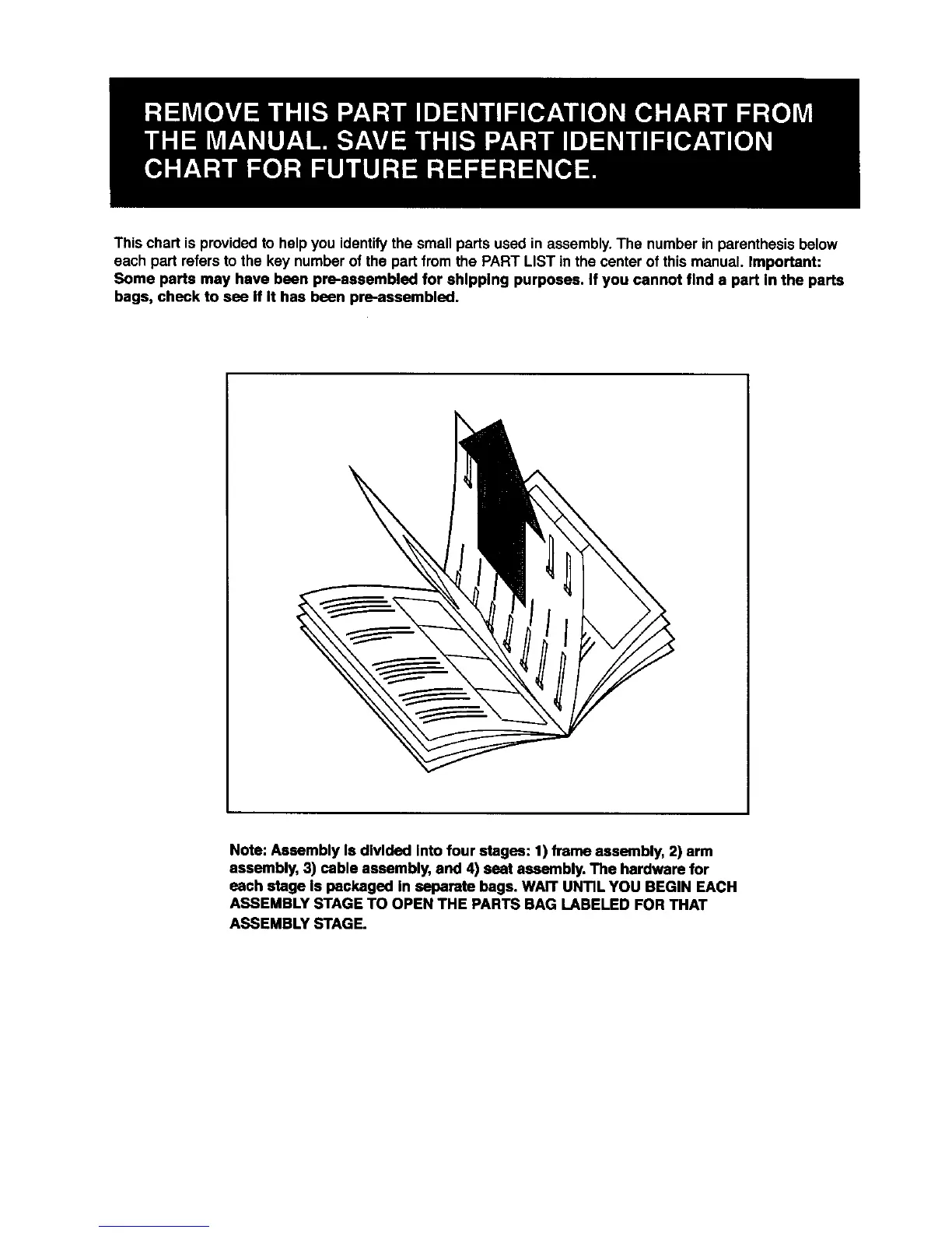 Note: Assembly Is divided Into four stages: 1) frame assembly, 2) arm