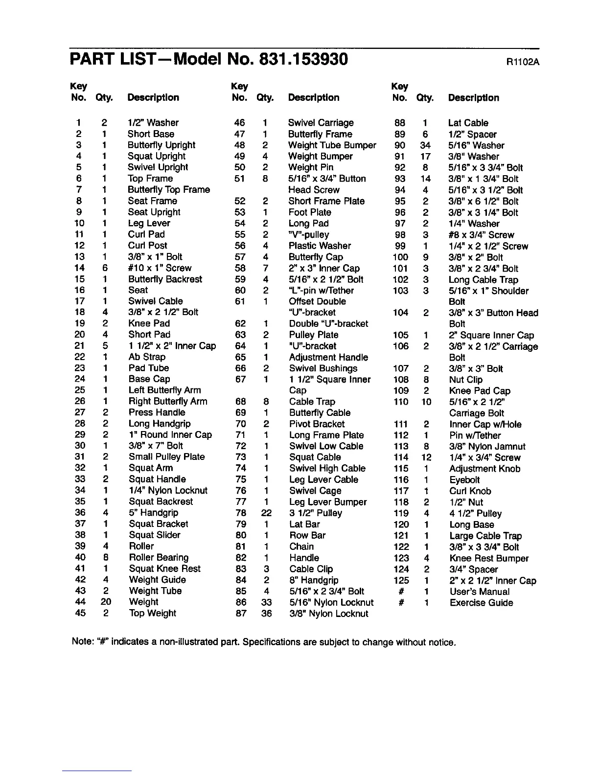 Note: "#" indicates a non-illustratedpart. Specificationsare subjectto change withoutnotice.