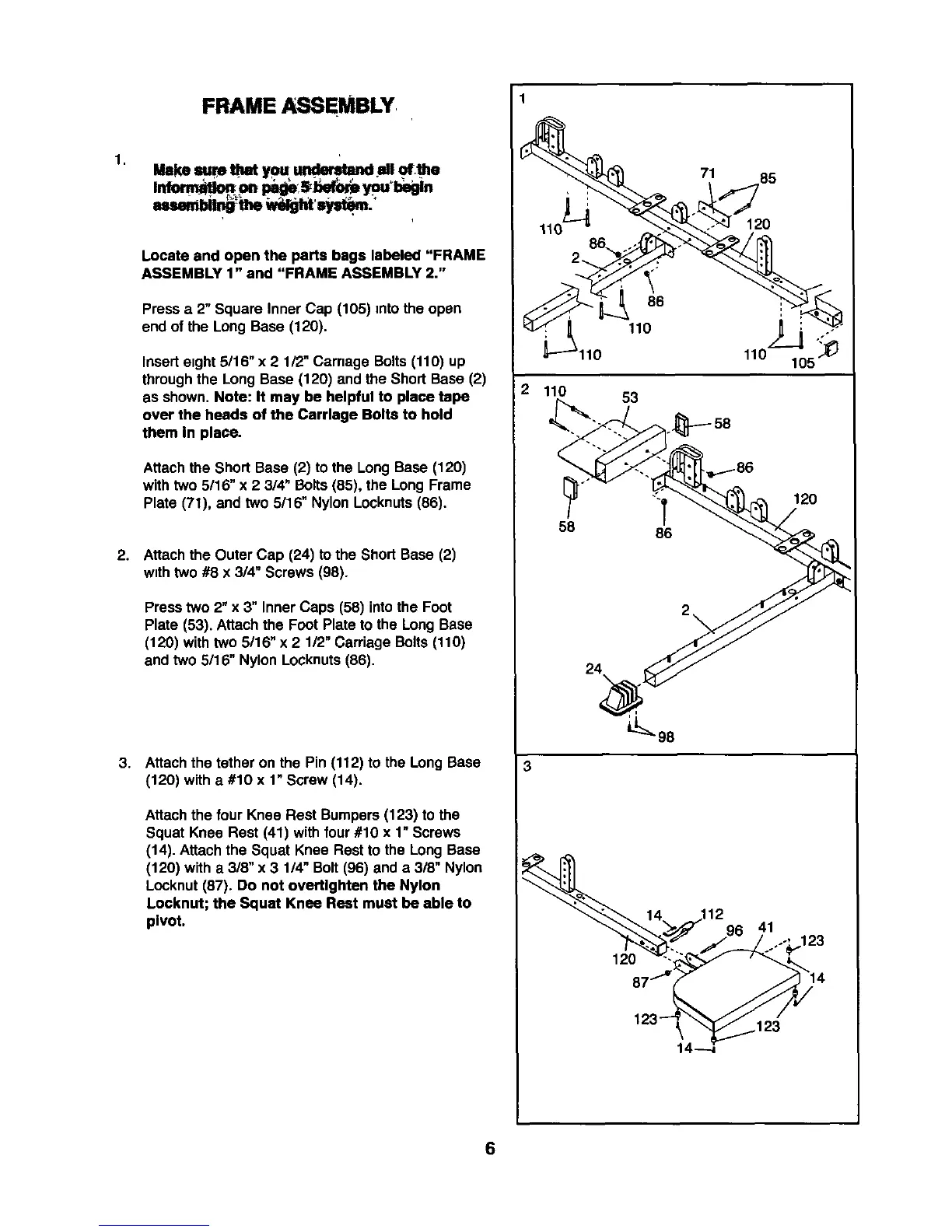 with two 5/16" x 2 3/4" Bolts(85), the Long Frame