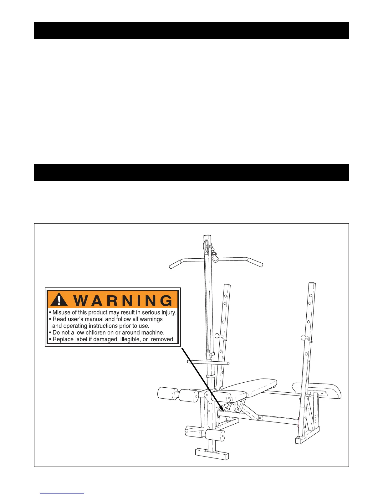 The decal shown below has been placed on the weight bench. If the decal is missing, or if it is not legi-